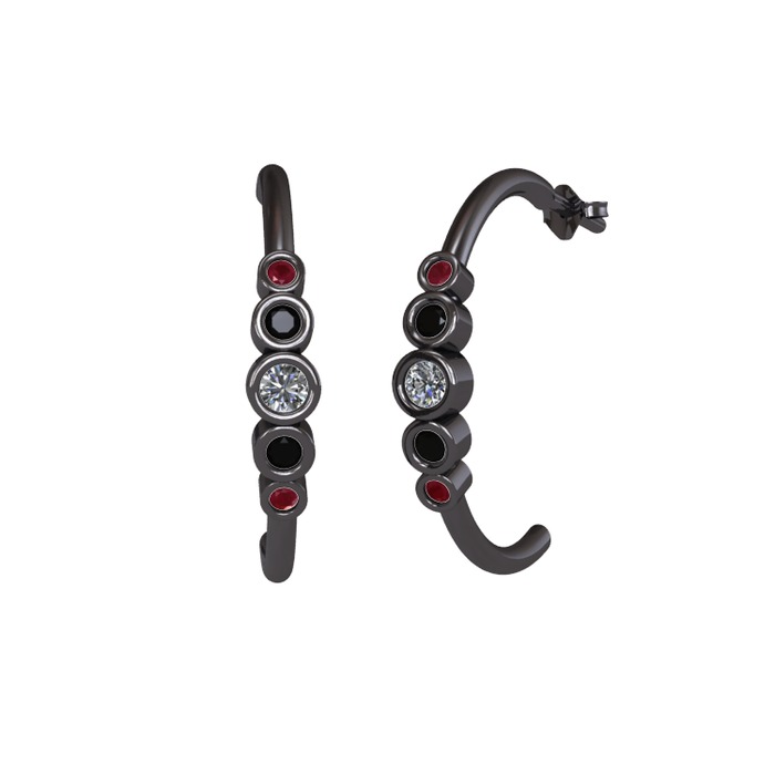 Pırlanta, siyah zirkon ve kök yakut 925 ayar siyah rodyum kaplama gümüş küpe (0.12 karat)