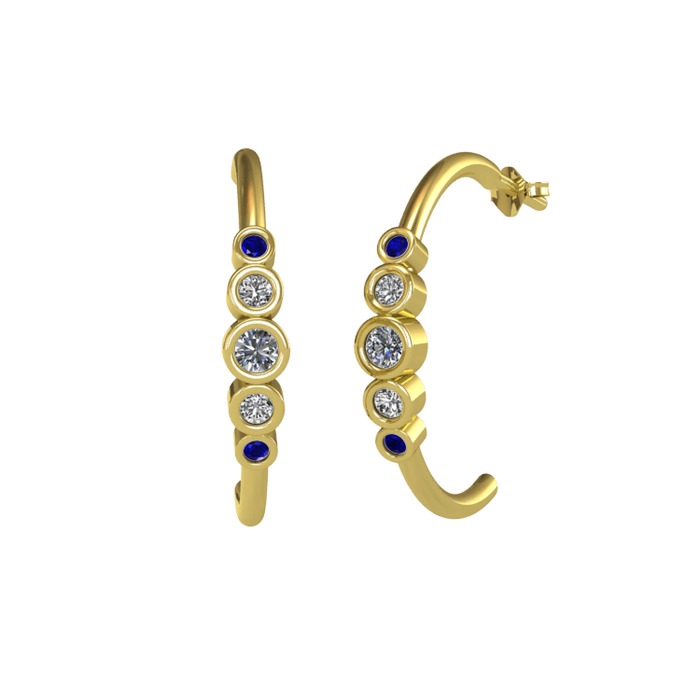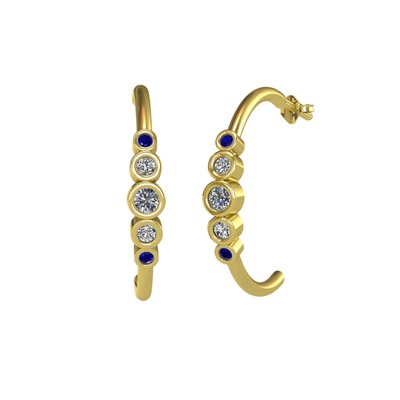 Pırlanta, swarovski ve lab safir 14 ayar altın küpe (0.12 karat)
