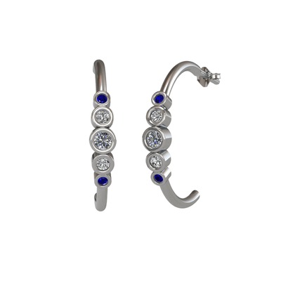 Pırlanta, swarovski ve lab safir 8 ayar beyaz altın küpe (0.12 karat)