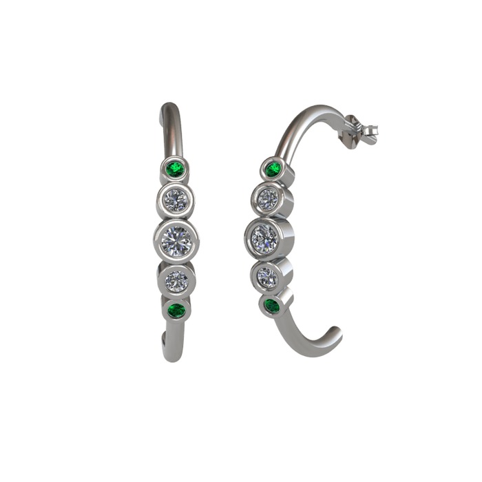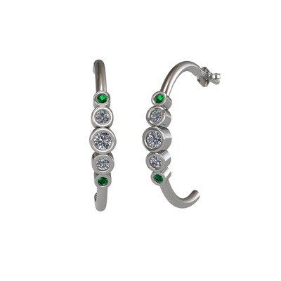 Pırlanta ve yeşil kuvars 8 ayar beyaz altın küpe (0.2 karat)