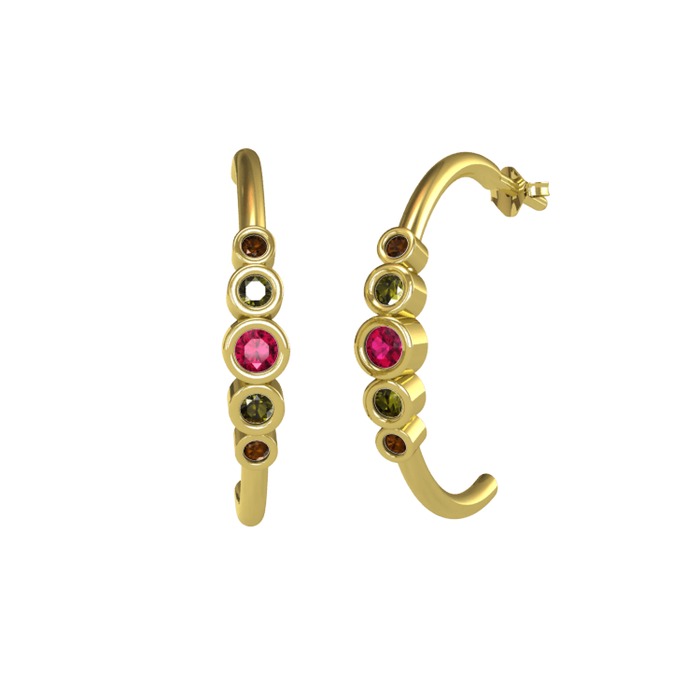 Rodolit garnet, peridot ve dumanlı kuvars 14 ayar altın küpe