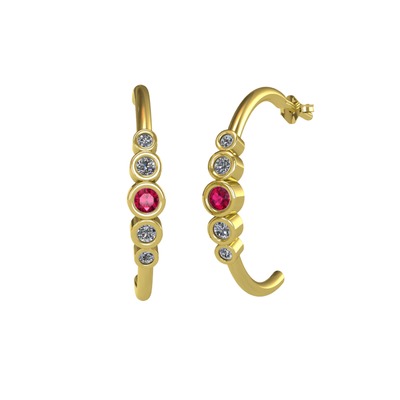 Rodolit garnet ve pırlanta 8 ayar altın küpe (0.16 karat)