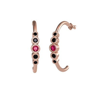 Rodolit garnet ve siyah zirkon 8 ayar rose altın küpe
