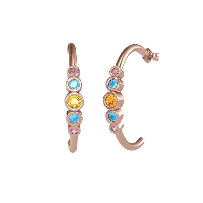 Sitrin, akuamarin ve pembe kuvars 14 ayar rose altın küpe