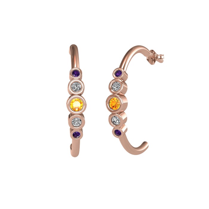 Sitrin, beyaz zirkon ve ametist 925 ayar rose altın kaplama gümüş küpe