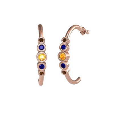Sitrin, lab safir ve dumanlı kuvars 8 ayar rose altın küpe