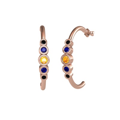 Sitrin, lab safir ve siyah zirkon 925 ayar rose altın kaplama gümüş küpe