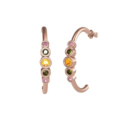 Sitrin, peridot ve pembe kuvars 14 ayar rose altın küpe