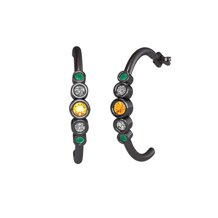 Sitrin, swarovski ve kök zümrüt 925 ayar siyah rodyum kaplama gümüş küpe