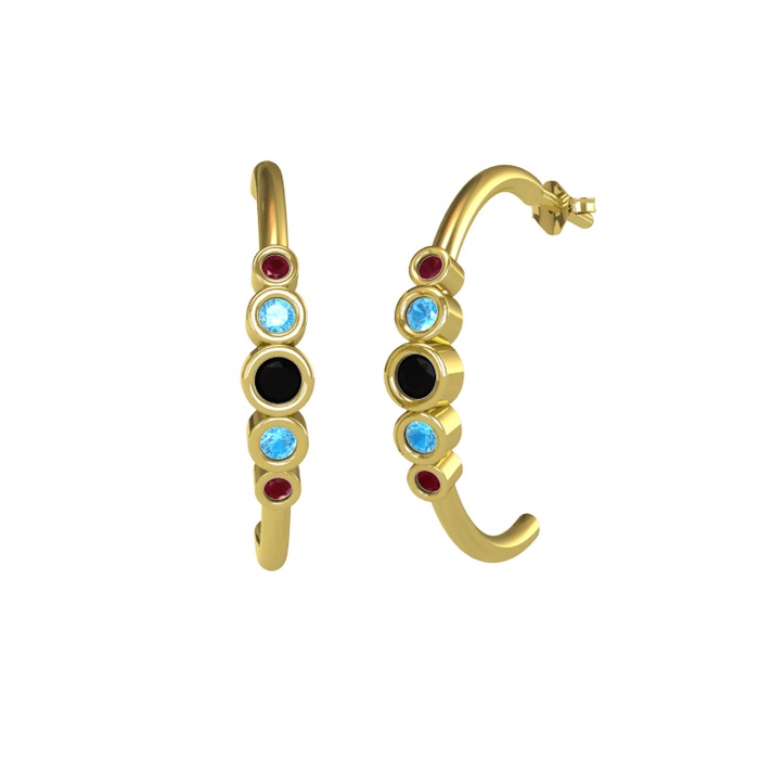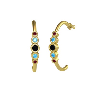 Siyah zirkon, akuamarin ve kök yakut 8 ayar altın küpe