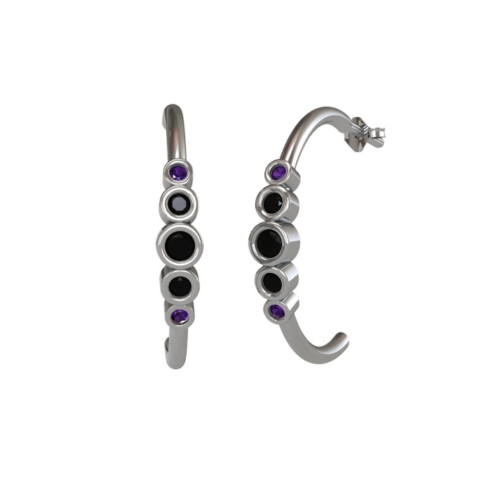 Siyah zirkon ve ametist 18 ayar beyaz altın küpe