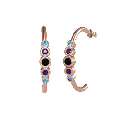 Siyah zirkon, ametist ve akuamarin 8 ayar rose altın küpe