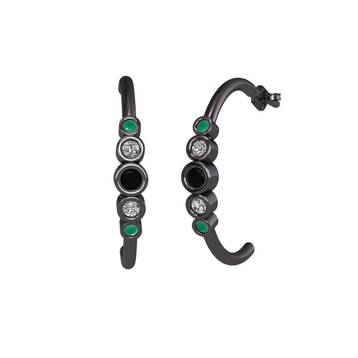 Siyah zirkon, beyaz zirkon ve kök zümrüt 925 ayar siyah rodyum kaplama gümüş küpe