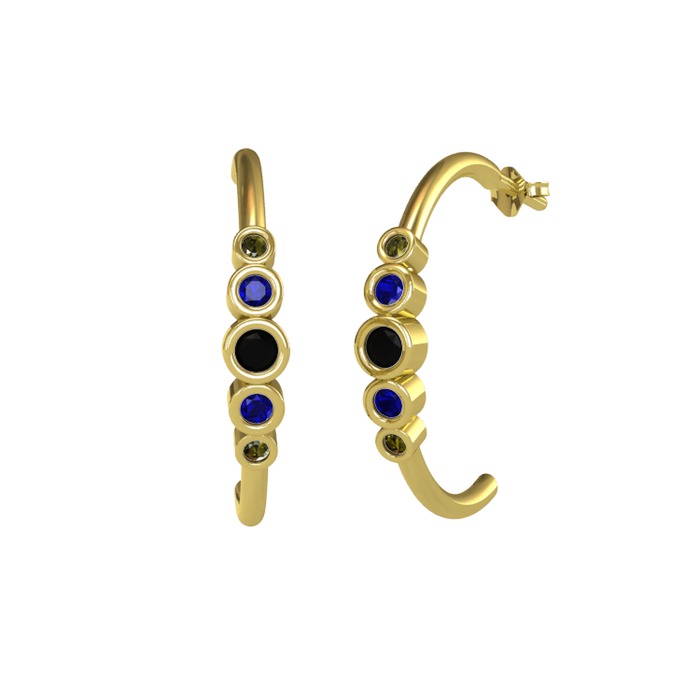 Siyah zirkon, lab safir ve peridot 14 ayar altın küpe