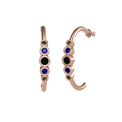Siyah zirkon, lab safir ve peridot 18 ayar rose altın küpe