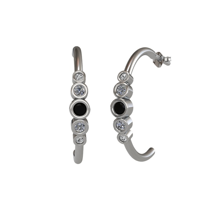 Siyah zirkon, pırlanta ve swarovski 14 ayar beyaz altın küpe (0.08 karat)