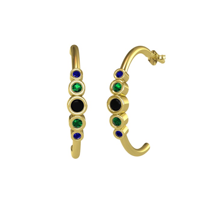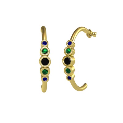 Siyah zirkon, yeşil kuvars ve lab safir 18 ayar altın küpe