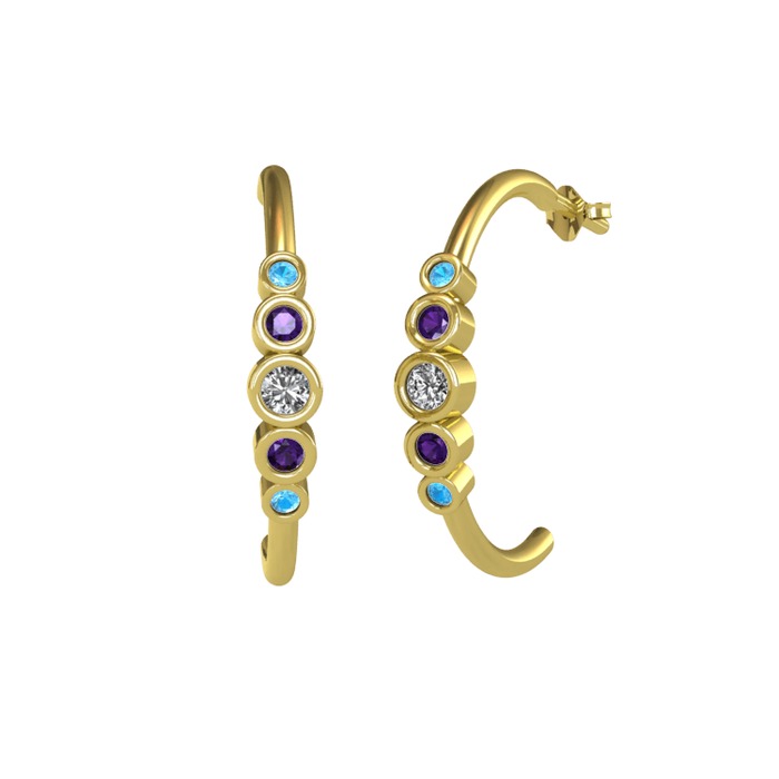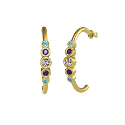 Swarovski, ametist ve akuamarin 18 ayar altın küpe
