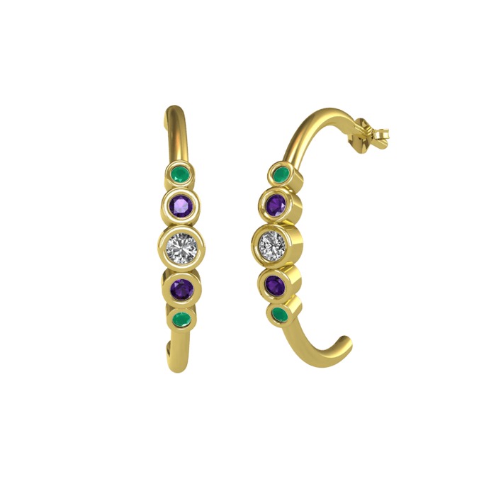 Swarovski, ametist ve kök zümrüt 925 ayar altın kaplama gümüş küpe