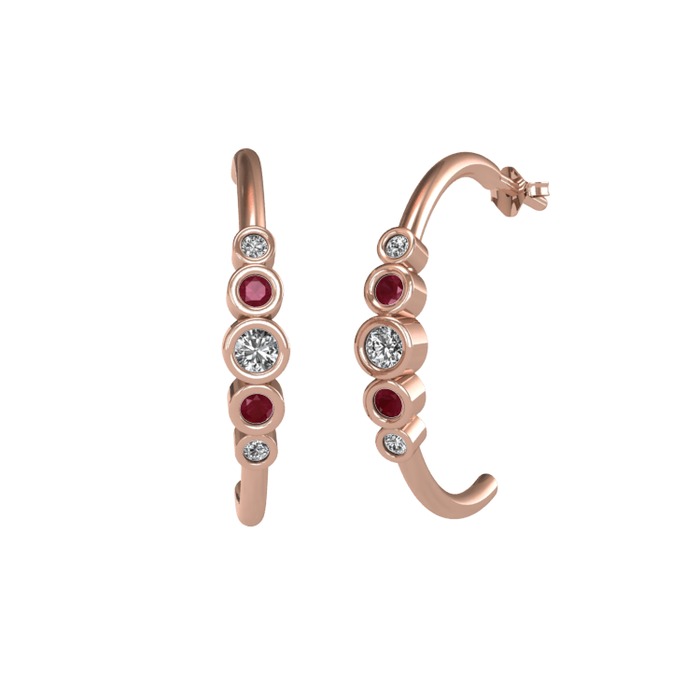Swarovski, kök yakut ve beyaz zirkon 8 ayar rose altın küpe