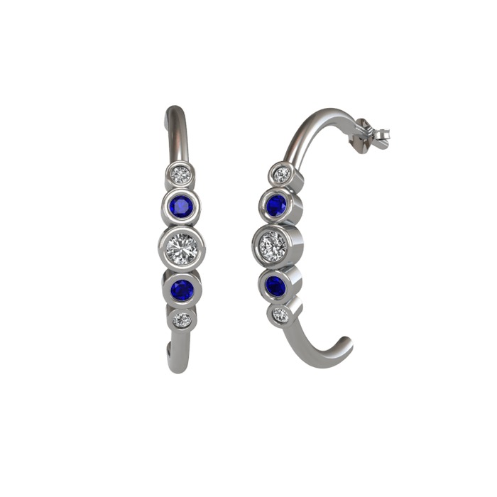 Swarovski ve lab safir 14 ayar beyaz altın küpe