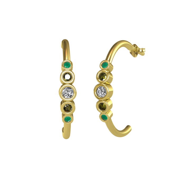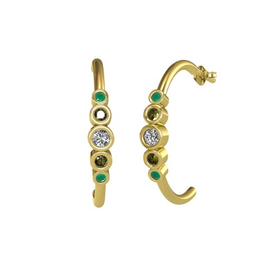 Swarovski, peridot ve kök zümrüt 18 ayar altın küpe