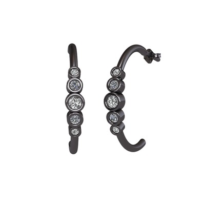 Swarovski, pırlanta ve beyaz zirkon 925 ayar siyah rodyum kaplama gümüş küpe (0.08 karat)