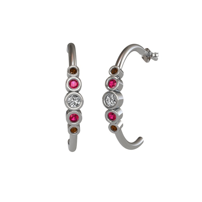 Swarovski, rodolit garnet ve dumanlı kuvars 18 ayar beyaz altın küpe