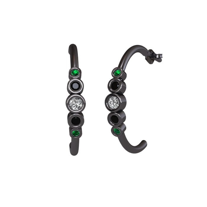 Swarovski, siyah zirkon ve yeşil kuvars 925 ayar siyah rodyum kaplama gümüş küpe