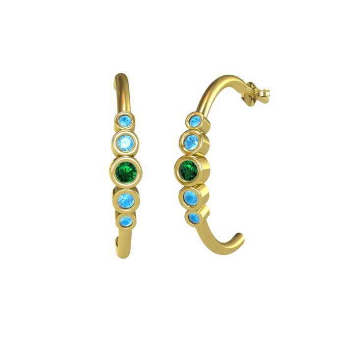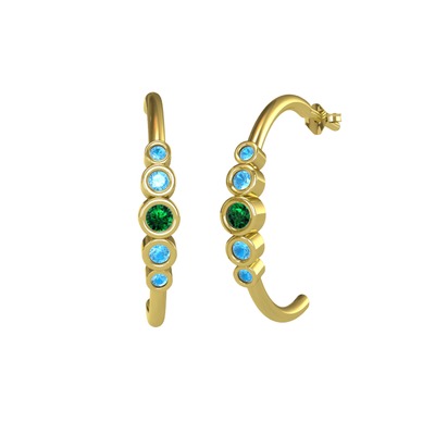 Yeşil kuvars ve akuamarin 925 ayar altın kaplama gümüş küpe