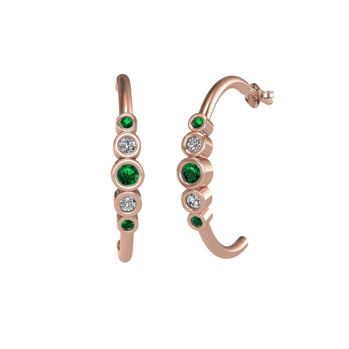 Yeşil kuvars ve beyaz zirkon 8 ayar rose altın küpe