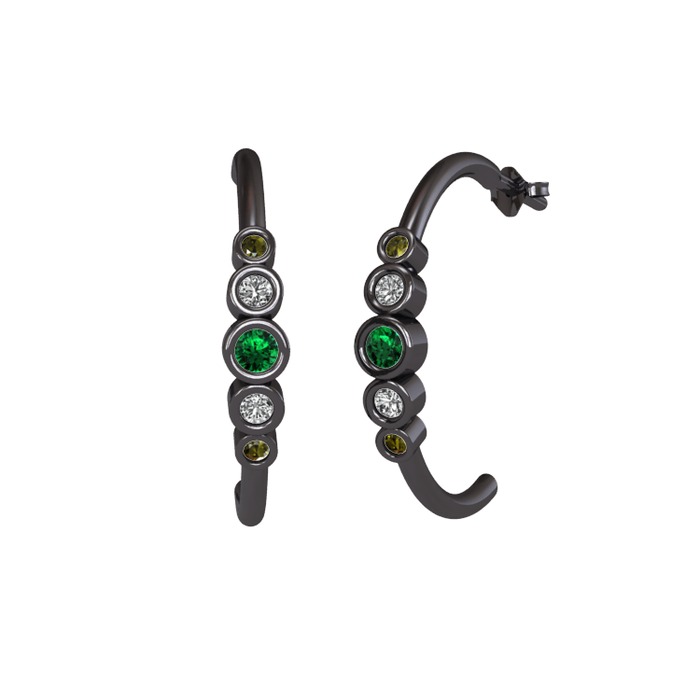 Yeşil kuvars, beyaz zirkon ve peridot 925 ayar siyah rodyum kaplama gümüş küpe
