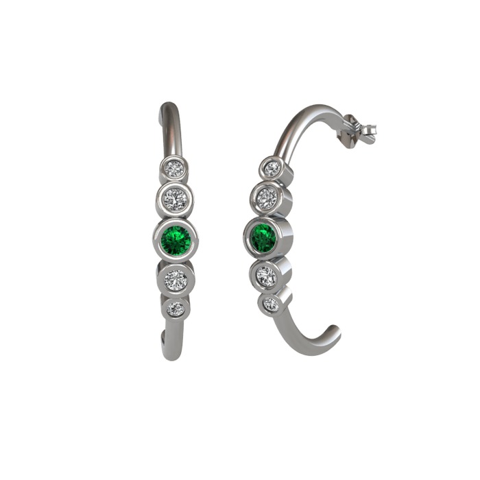 Yeşil kuvars, beyaz zirkon ve swarovski 8 ayar beyaz altın küpe
