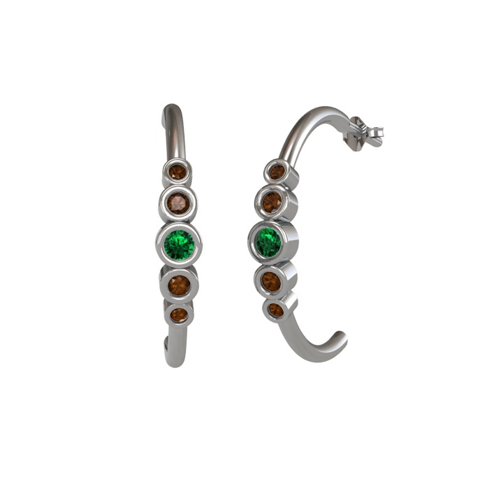 Yeşil kuvars ve dumanlı kuvars 8 ayar beyaz altın küpe