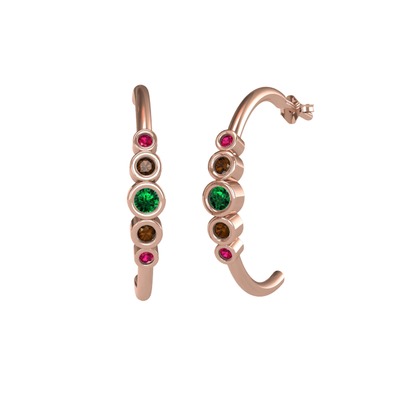 Yeşil kuvars, dumanlı kuvars ve rodolit garnet 18 ayar rose altın küpe