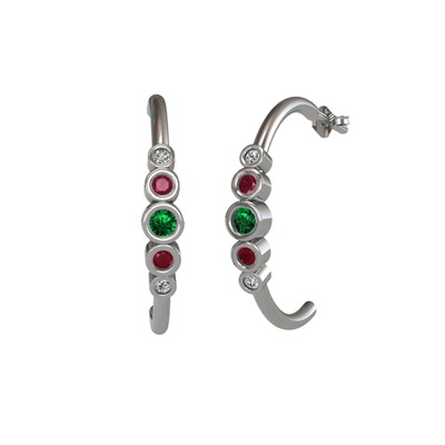Yeşil kuvars, kök yakut ve swarovski 925 ayar gümüş küpe