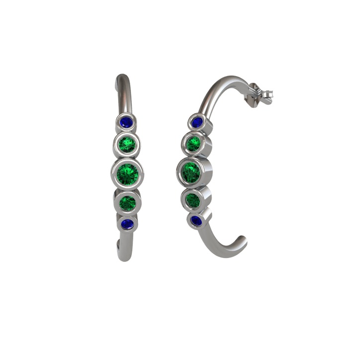 Yeşil kuvars ve lab safir 8 ayar beyaz altın küpe