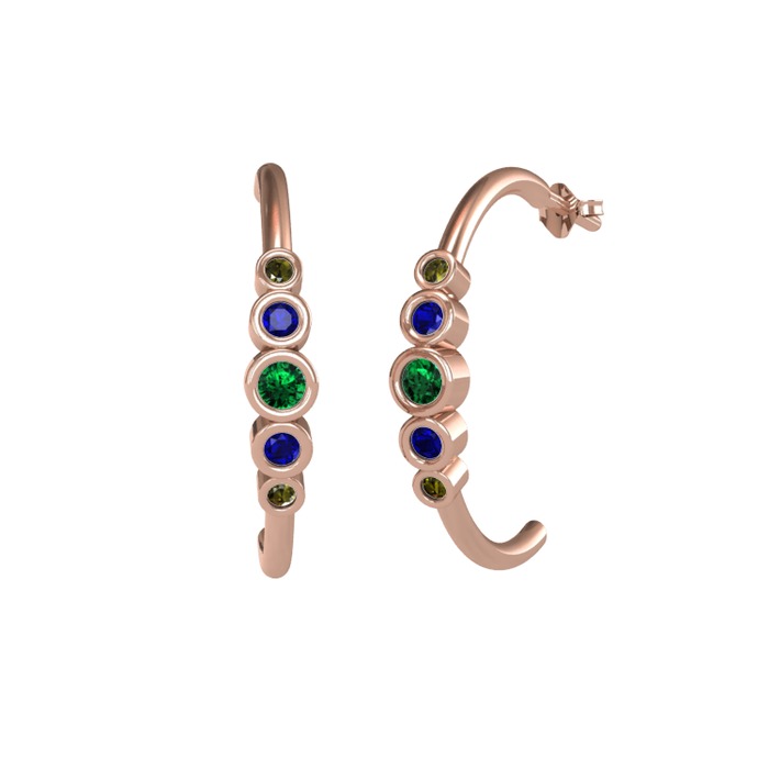 Yeşil kuvars, lab safir ve peridot 18 ayar rose altın küpe
