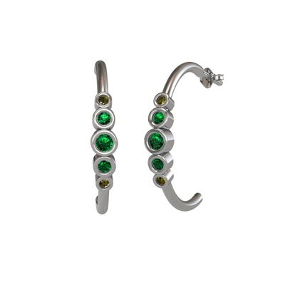 Yeşil kuvars ve peridot 14 ayar beyaz altın küpe