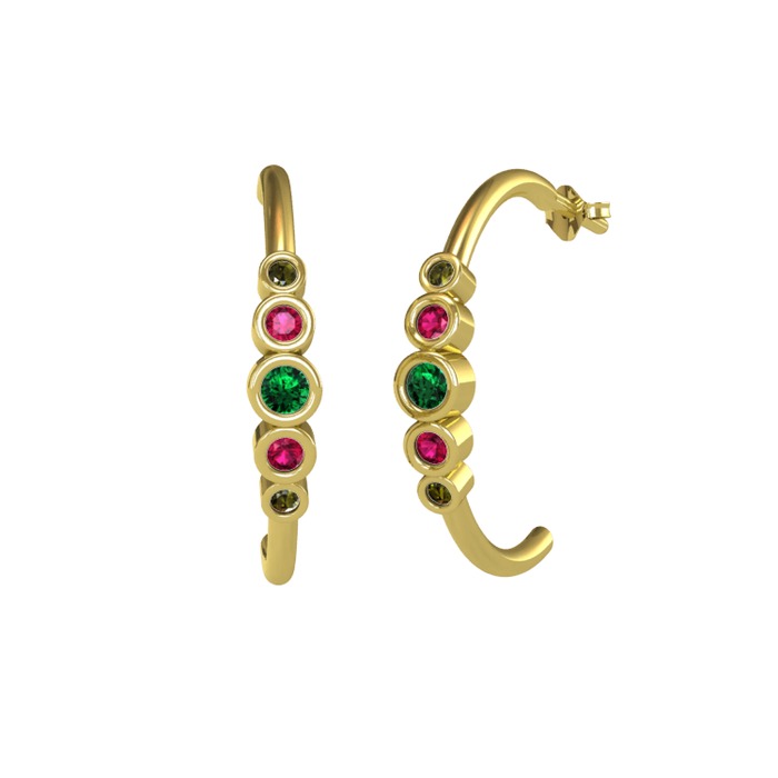 Yeşil kuvars, rodolit garnet ve peridot 18 ayar altın küpe