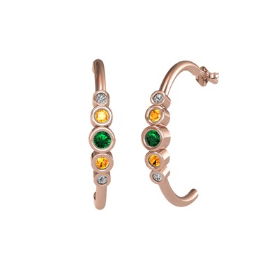 Yeşil kuvars, sitrin ve beyaz zirkon 8 ayar rose altın küpe