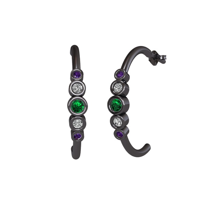 Yeşil kuvars, swarovski ve ametist 925 ayar siyah rodyum kaplama gümüş küpe