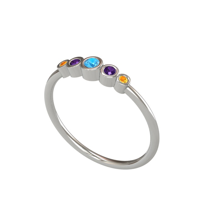 Akuamarin, ametist ve sitrin 925 ayar gümüş yüzük