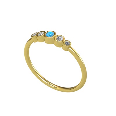 Akuamarin, beyaz zirkon ve elmas 18 ayar altın yüzük (0.03 karat)