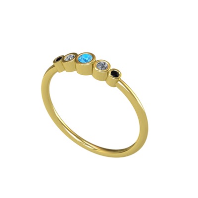 Akuamarin, elmas ve siyah zirkon 925 ayar altın kaplama gümüş yüzük (0.072 karat)