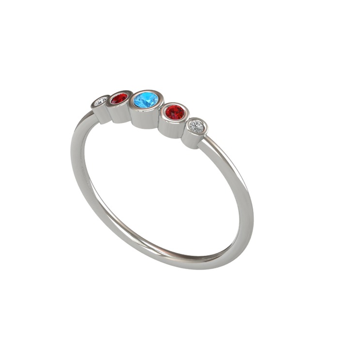 Akuamarin, garnet ve beyaz zirkon 925 ayar gümüş yüzük