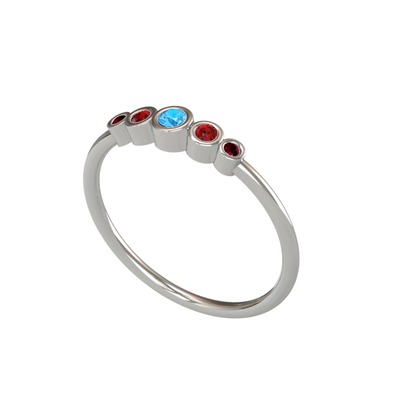 Akuamarin, garnet ve kök yakut 14 ayar beyaz altın yüzük