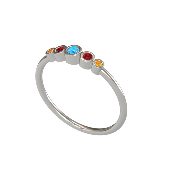 Akuamarin, garnet ve sitrin 925 ayar gümüş yüzük