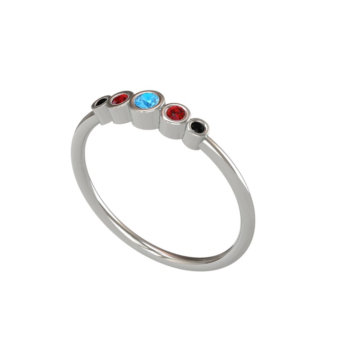 Akuamarin, garnet ve siyah zirkon 14 ayar beyaz altın yüzük