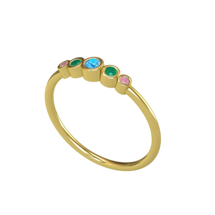 Akuamarin, kök zümrüt ve pembe kuvars 18 ayar altın yüzük